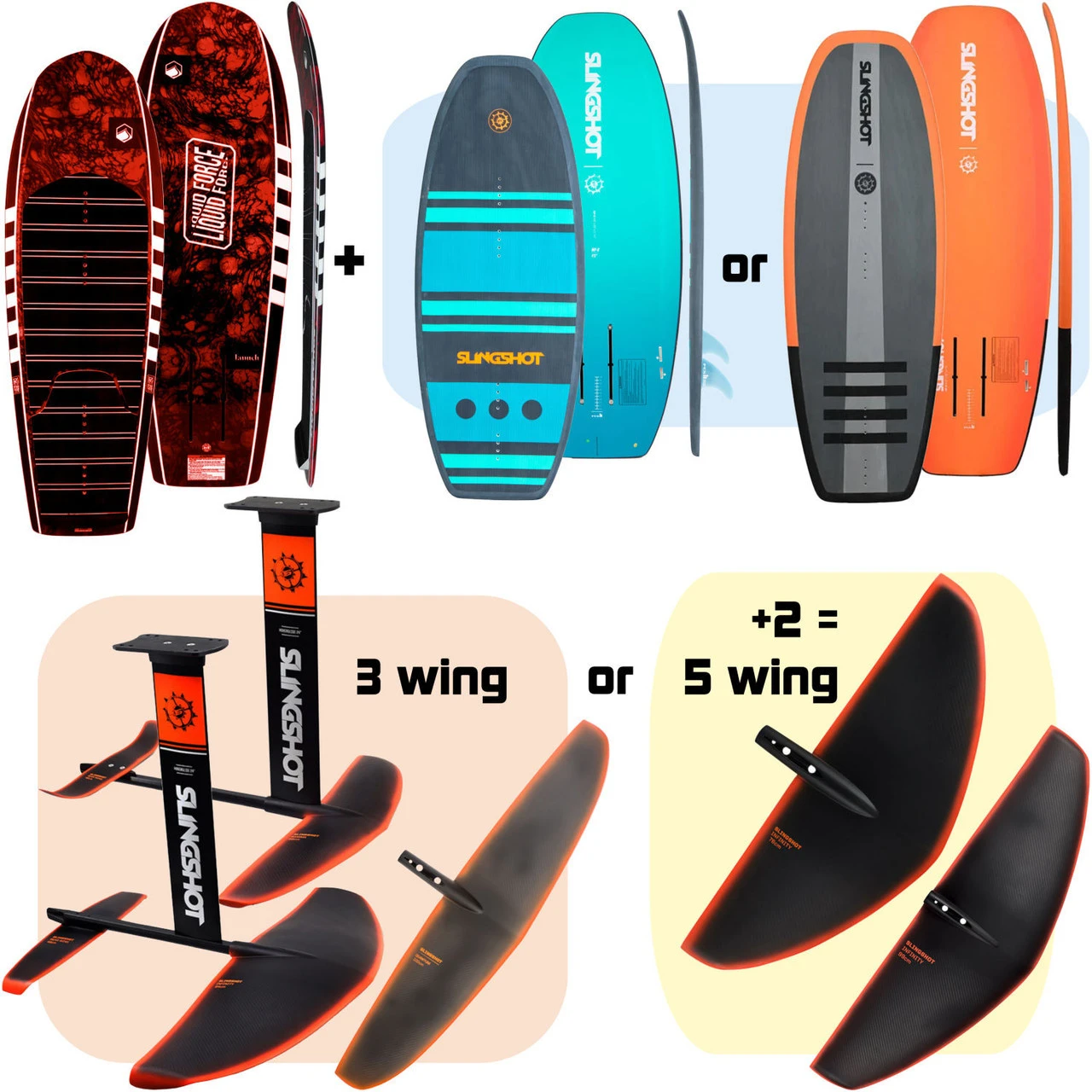 - Two Complete Slingshot Foils w/ Choice of 3 or 5 Front Wings